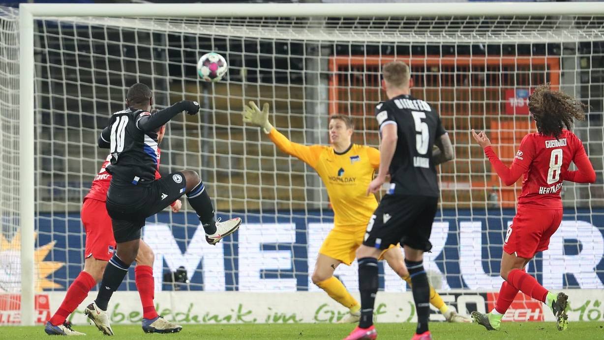 Nach der Pause war die Arminia dann auf einmal die bessere und dominante Mannschaft und wäre auch fast schnell in Führung gegangen. Nach einem Querschläger von Fernandez Aldarete traf Sergio Cordova aber aus der Drehung nur das Außennetz (48.). Eine Viertelstunde später fiel das 1:0 dann doch. Einen weiten Einwurf von Cedric Brunner verlängerte Berlins Lucas Tousart unglücklich mit dem Kopf, Yabo behauptete sich gegen Stark und ließ dem früheren Bielefelder Alexander Schwolow mit einem Schuss unter die Latte keine Chance. Die Berliner, die wegen einer verletzungsbedingten Behandlung von Jessic Ngankam zu diesem Zeitpunkt nur zu zehnt waren, protestierten vergeblich wegen eines vermeintlichen Foulspiels an Stark.