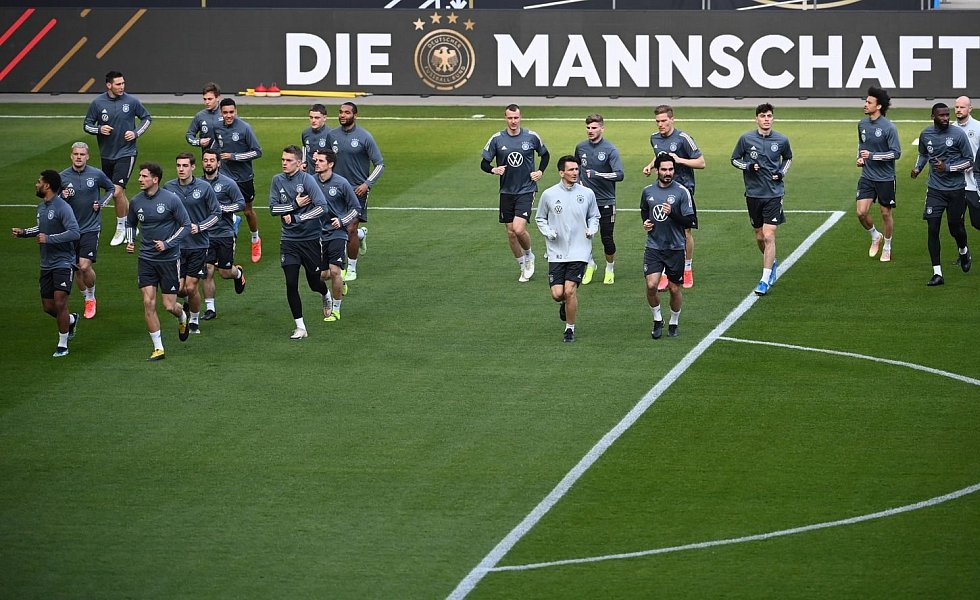 Deutschland: Neuer (Bayern München/34 Jahre/96 Länderspiele) - Klostermann (RB Leipzig/24/10), Ginter (Borussia Mönchengladbach/ 27/35), Rüdiger (FC Chelsea/28/37), Halstenberg (RB Leipzig/29/8) - Goretzka (Bayern München/26/29), Kimmich (Bayern München/26/50), Gündogan (Manchester City/30/42) - Sané (Bayern München/25/25), Gnabry (Bayern München/25/17), Werner (FC Chelsea/25/35)