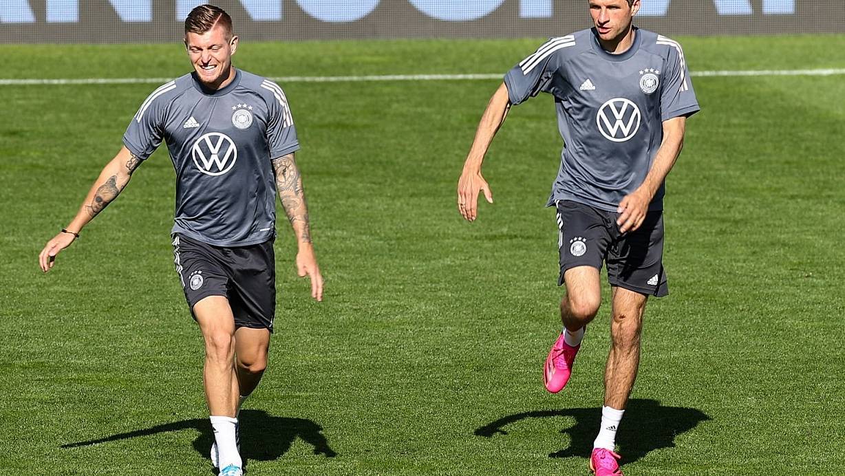 Der 31 Jahre alte Kroos, der in Madrid 14 Tage in häuslicher Quarantäne war, und der 18-jährige Musiala waren bei den Aufwärm-Übungen des Teams im Tivoli Stadion mit auf dem Platz. Danach trainierte die Mannschaft unter Ausschluss der Medien weiter. Für einen Einsatz im Spiel gegen die Dänen am Mittwoch (21.00 Uhr/RTL) kommt der 101-malige Nationalspieler Kroos noch nicht infrage.