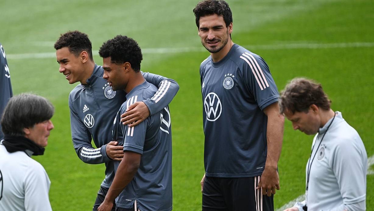 «Im Training ist Feuer drin», sagte Außenverteidiger Robin Gosens. Die Stimmung im Team sei «genial», ergänzte der Turnierneuling von Atalanta Bergamo. In den Wettkampfformen und Trainingsspielen geht es emotional zu und bisweilen auch mal etwas lauter. «Man muss sich auch mal auf die Eier gehen», meinte der 26-jährige Gosens.
