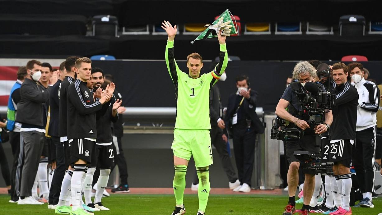 Kurz vor dem Anpfiff des Testspiels gegen Lettland in Düsseldorf standen Bundestrainer Joachim Löw und die Spieler Spalier für den 35 Jahre alten Kapitän. Die rund 1000 Zuschauer jubelten dem Torwart vom FC Bayern zu.