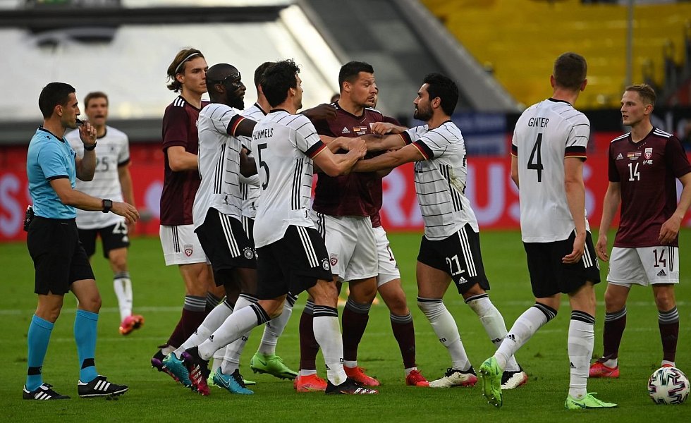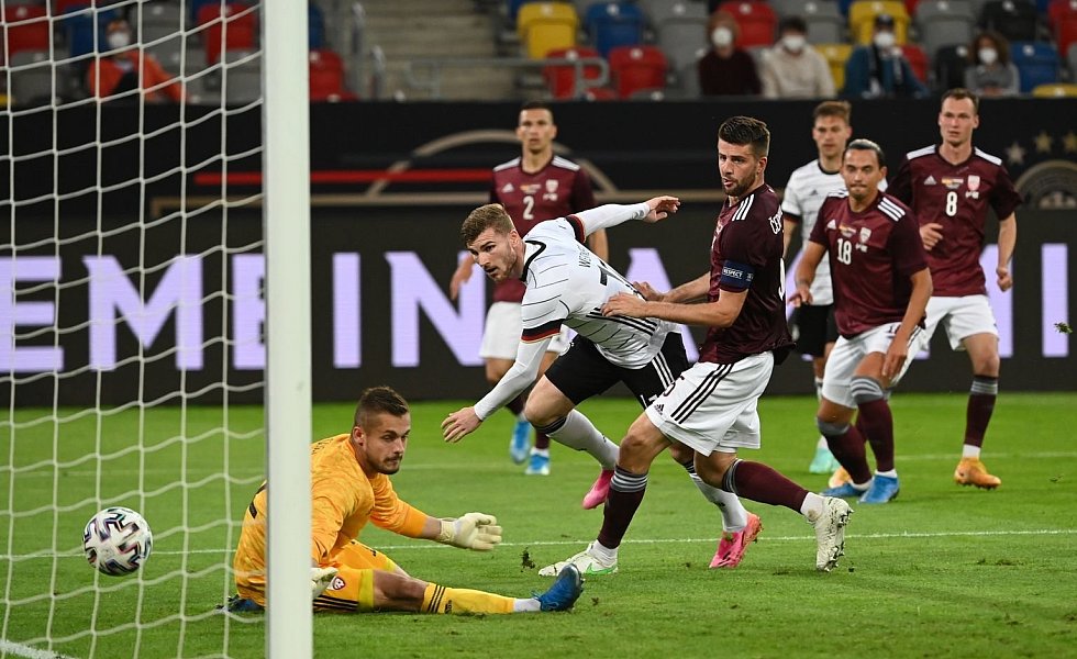 Robin Gosens eröffnete mit seinem ersten Länderspieltreffer den Torreigen (19. Minute). Ilkay Gündogan (20.), Müller mit seinem Tor-Comeback im DFB-Team nach drei Jahren (27.), Serge Gnabry (45.), Timo Werner (50.) und Leroy Sané (76.) legten nach. Der Treffer des starken Kai Havertz wurde als Eigentor von Ozols gewertet (39.).
