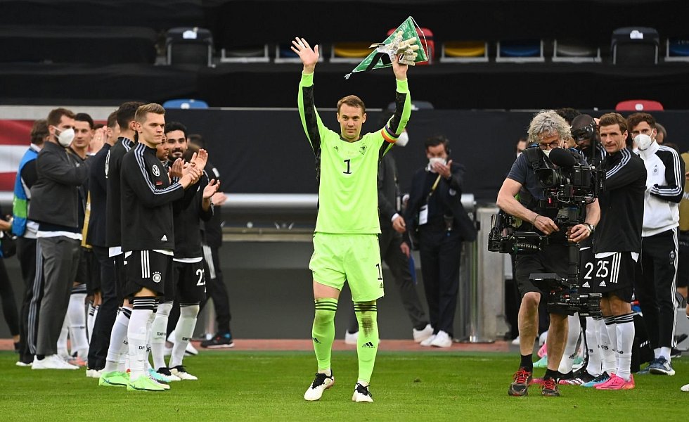 "Das Ergebnis war nicht das Wichtigste heute. Die Art und Weise, wie wir Fußball spielen wollten und es dann auch umsetzen konnten, das war wichtig", analysierte Müller. Dessen Münchner Vereinskollege Neuer hatte seinen größten Auftritt schon vor dem Anpfiff, als er durch ein Spalier der Teamkollegen und Betreuer den Rasen betrat.