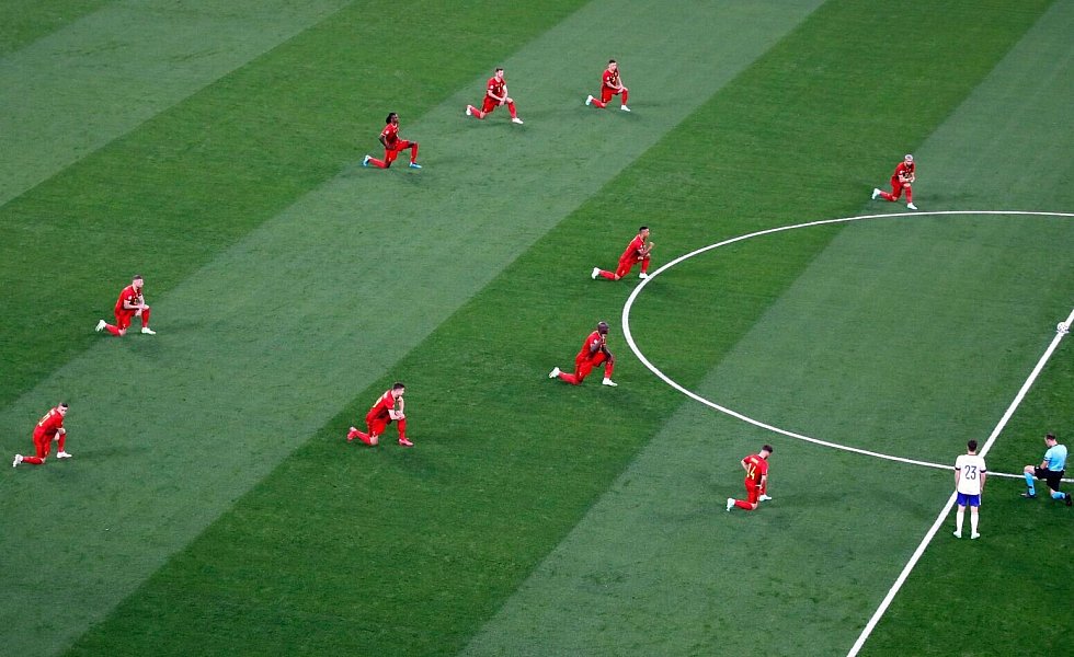 Als Topspieler Eriksen um 18.43 Uhr im ersten Spiel der Gruppe B zwischen Dänemark und Finnland (0:1) in Kopenhagen zusammengebrochen war, herrschte Unklarheit, wie es mit dem EM-Tag und dem Abendspiel in Russland weitergeht. Erst als es bei dem 29 Jahre alten Profi Entwarnung gab, ging die Show in St. Petersburg ungebremst weiter. Die Rituale und Zeremonien vor dem Spiel, laute Musik aus den Boxen, das Ausbuhen des Gegners beim Einlaufen und beim Knien vor dem Anpfiff: Hätte man die Neuigkeiten aus dem zweiten Spiel der Gruppe nicht mitbekommen, bei Belgien und Russland hätte wenig bis nichts auf die schockierende Szene zuvor hingedeutet.