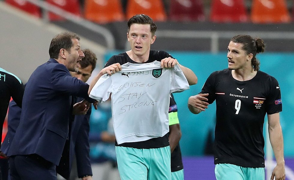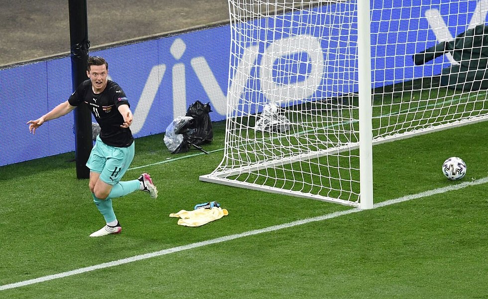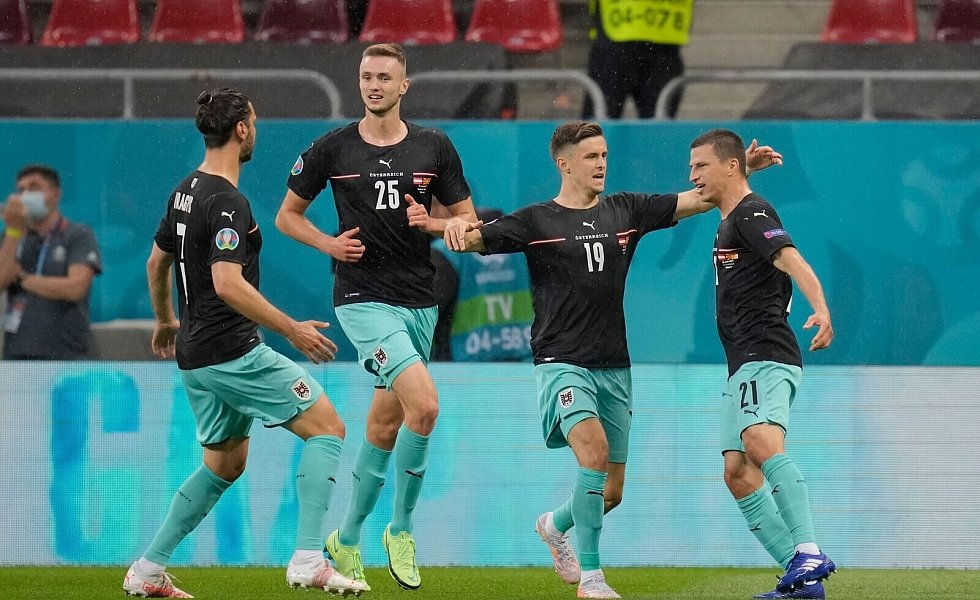Gleich ihre erste Chance nutzten die Österreicher dann aber eiskalt. Nach einer herrlichen Flanke des Leipzigers Marcel Sabitzer aus dem linken Halbfeld traf Lainer am zweiten Pfosten per Direktabnahme zur überraschenden Führung. Beim Torjubel hielt der Außenverteidiger genau wie Gregoritsch später ein Shirt mit der Aufschrift «Eriksen stay strong» hoch - eine aufmunternde Botschaft an den Dänen Christian Eriksen, der im Spiel gegen Finnland (0:1) tags zuvor kollabiert war und wiederbelebt werden musste. Vier Minuten später hätte Stuttgart-Stürmer Sasa Kalajdzic fast nachgelegt.