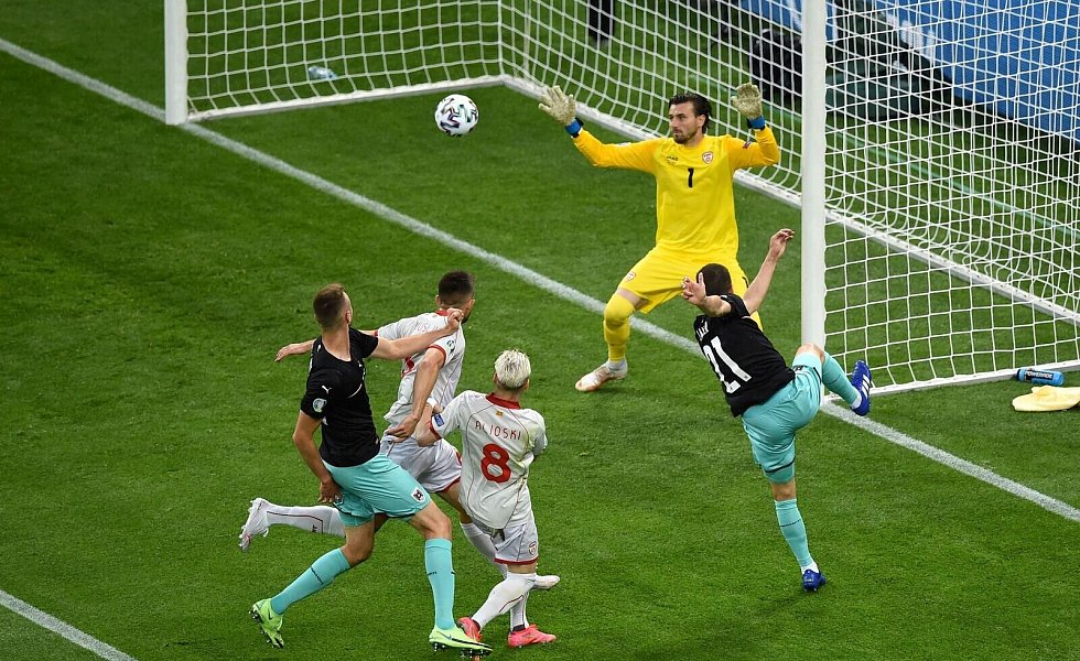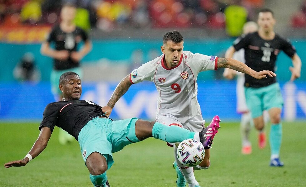 Unterstützt von ihren Anhängern, die das Gros der Besucher in der Arena Na?ional? ausmachten und in der Anfangsphase jede gelungene Aktion ihrer Helden lautstark bejubelten, begannen die Nordmazedonier durchaus mutig. Die Österreicher, aus deren Startelf neun Profis in der vergangenen Saison in der deutschen Bundesliga gespielt hatten, wirkten überrascht und waren zunächst um Kontrolle bemüht. Kapitän Alaba, der nach der EM vom FC Bayern München nach Spanien wechselt, agierte dabei als Ballverteiler und Mittelmann in der Abwehrkette.