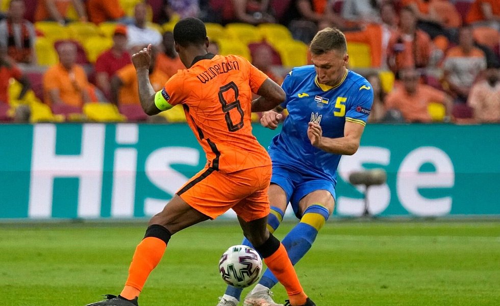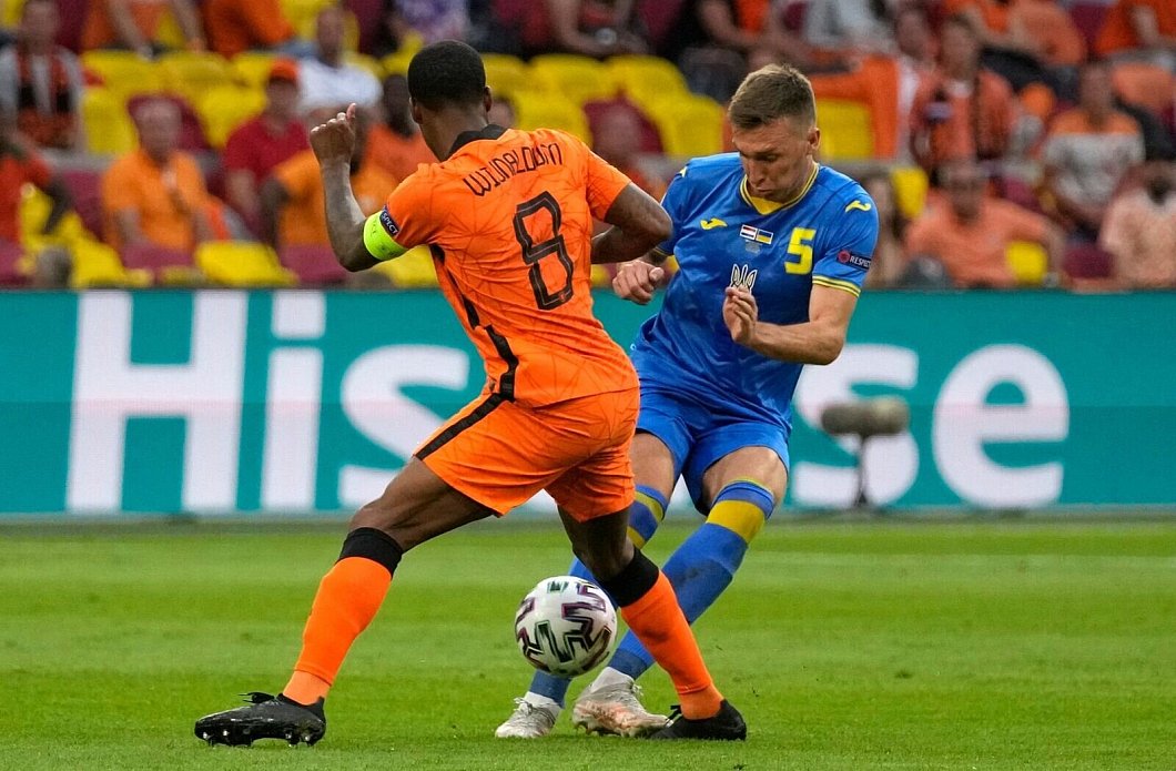 Die Gastgeber, die erstmals seit der WM 2014 wieder bei einem großen Turnier dabei sind und eine schwache EM-Vorbereitung absolviert hatten, starteten furios in die vom deutschen Schiedsrichter Felix Brych fehlerfrei geleitete Partie. Schon in der 2. Minute setzte Memphis Depay zu einem Solo an, scheiterte beim Abschluss aber am ukrainischen Torwart Georgi Buschtschan. Der 27-Jährige von Dynamo Kiew avancierte zum besten Mann der Osteuropäer und entschärfte wenig später mit einer Fußparade die nächste Großchance der Niederländer durch Dumfries.