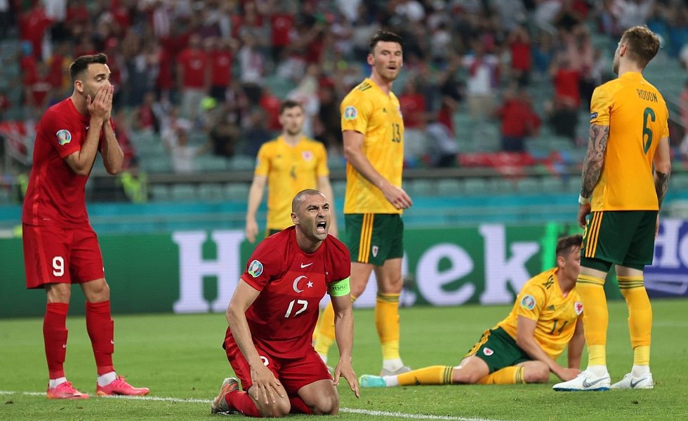 Dann sorgte ausgerechnet Bale für ungläubiges Staunen und versteinerte Gesichter bei den walisischen Fans auf der Tribüne: Nachdem der 31-Jährige im Strafraum gefoult wurde, trat er selbst zum Elfmeter an - und schoss meterweit über das Tor. Kurz darauf schoss Cakir den Waliser an, von dem der Ball nur um wenige Zentimeter am türkischen Tor vorbei trudelte. Dem Druck der Türken in der hektischen Schlussphase mit Rangeleien zwischen den Spielern hielten die Waliser mühelos stand.
