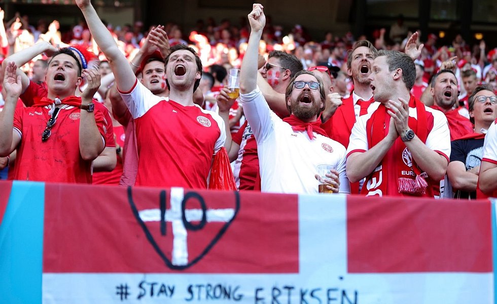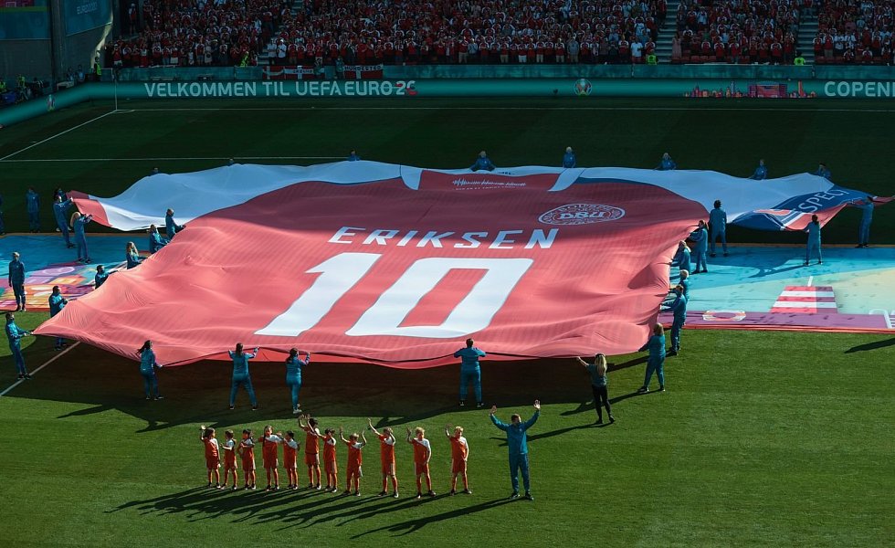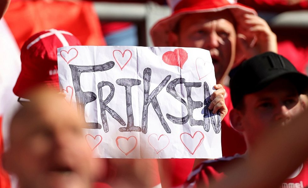 An den Tribünen hingen Plakate wie «Hele Danmerk er med dig, Christian» (Ganz Dänemark ist mit dir, Christian). Nach zehn Spielminuten unterbrach Schiedsrichter Björn Kuipers aus den Niederlanden dann sogar die Partie, damit alle Zuschauer und Spieler noch einmal lautstark für Eriksen applaudieren konnten.