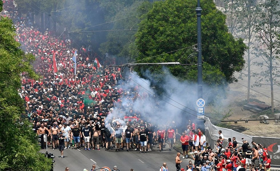 Wie bereits am vergangenen Dienstag vor der 0:3-Auftaktniederlage der Ungarn gegen Titelverteidiger zogen Tausende einheimische Schlachtenbummler mit Gesängen, aber auch Feuerwerk und Böllern gemeinsam durch die Stadt zum Stadion. Auf den Rängen der Puskas Arena feuerten 55.998 Zuschauer ihre Mannschaften an, rund zehn Prozent davon waren Fans der französischen Mannschaft.