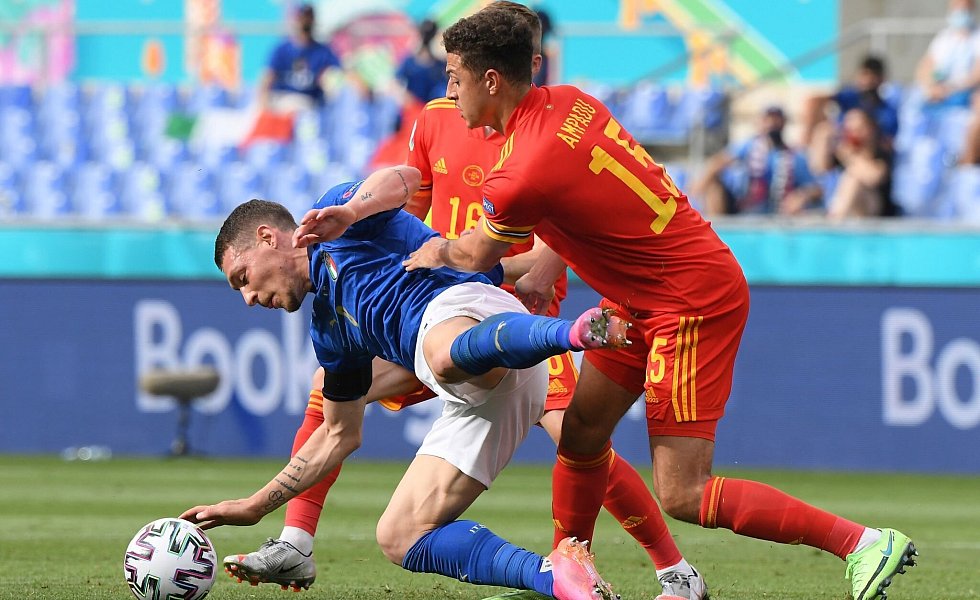 An den begeisternden Offensiv-Fußball, den sie in den ersten beiden Partien gezeigt hatten, konnten die Italiener zwar nicht anknüpfen. Nach und nach fanden sie gegen extrem biedere Waliser aber immer besser ins Spiel. Für die größte Gefahr in der ersten halben Stunde sorgten Außenverteidiger Rafael Toloi mit einem abgefälschten Schuss aus dem Rückraum (17.) und Stürmer Andrea Belotti, dessen Versuch aus spitzem Winkel links am Tor vorbeirauschte (24.).