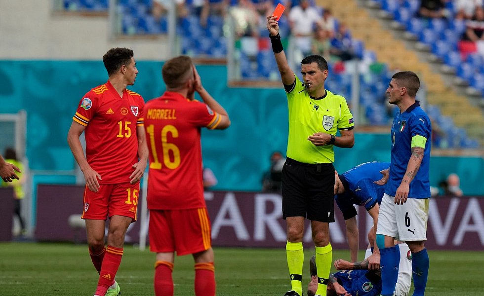 Auch nach der Pause blieben ruhende Bälle ein gefragtes Mittel: Italiens Federico Bernardeschi hämmerte einen Freistoß aus knapp 30 Metern an den linken Pfosten (53.). Zwei Minuten später schwächten sich die Waliser selbst: Der frühere Leipziger Ampadu sah für einen Tritt gegen Bernardeschi vom rumänischen Schiedsrichter Ovidiu Alin Hategan glatt Rot. In der Folge kam von den Walisern offensiv noch weniger. Italien hätte sogar noch erhöhen können - wie bei einer guten Chance durch Belotti nach einem Konter (65.). Erst 15 Minuten vor Schluss wurde dann der weitgehend blasse Superstar der Gäste, Bale, nochmal gefährlich und schoss freistehend über das Tor.