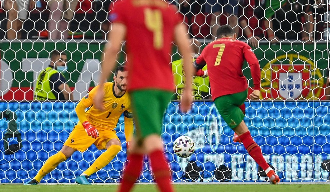 Dank seines Elfmeter-Doppelpacks in der 30. und 60. Minute kam der Fußball-Europameister im Gipfeltreffen mit Weltmeister Frankreich in Budapest zu einem 2:2 (1:1) und zog ins Achtelfinale ein. In der Neuauflage des EM-Endspiels von 2016 hatte Karim Benzema (45.+2/Foulelfmeter, 48.) den Weltmeister vor 54 886 Zuschauern in der Puskas Arena in Führung gebracht.