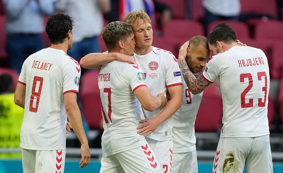 Auf dem Rasen tanzten die Spieler um Doppel-Torschütze Kasper Dolberg ausgelassen, Erfolgscoach Kasper Hjulmand umarmte jeden seiner Akteure - und am Ende versammelten sich alle zu einem Gruppenfoto vor den Anhängern. 29 Jahre nach dem EM-Coup im Finale gegen Deutschland träumt ganz Dänemark wieder vom Titel.