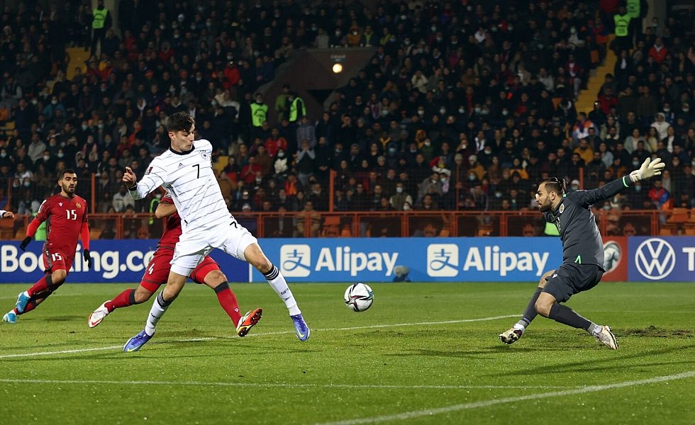 Die England-Profis Kai Havertz (15. Minute) und Ilkay Gündogan (45.+4/Foulelfmeter und 50.) sowie Jonas Hofmann (64.) trafen vor rund 13 000 Zuschauern für das längst für die Endrunde in Katar qualifizierte Flick-Team. Dem früheren Dortmunder Henrich Mchitarjan (59.) gelang per Foulelfmeter der umjubelte Treffer für die Gastgeber.