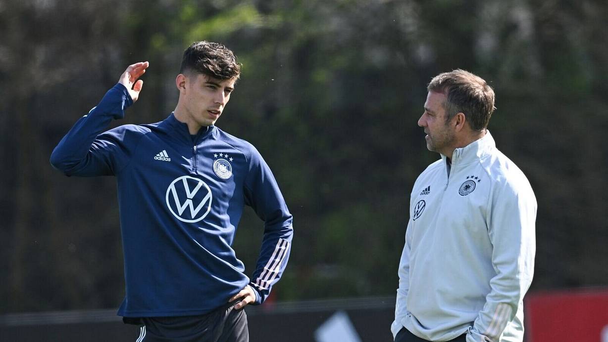 «Top seriös» will Flick ins Turnierjahr starten. Das hat er seinen Spielern eingeimpft: «Die Fans müssen spüren, dass wir Spaß haben am Fußball!» Da kommt schnell Havertz ins Spiel, dessen Entwicklung dem Bundestrainer extrem gefällt. Havertz ist in England zu einem Spieler gereift, der für Titel sorgt: Im Champions-League-Finale 2021 und auch im Endspiel der Club-WM erzielte der 22-Jährige jeweils den Siegtreffer für den FC Chelsea. «Kai macht Tore. Und man sieht, dass er etwas körperbetonter spielt, mehr in die Zweikämpfe geht. Das nehmen wir mit Freude wahr», kommentierte der Bundestrainer.