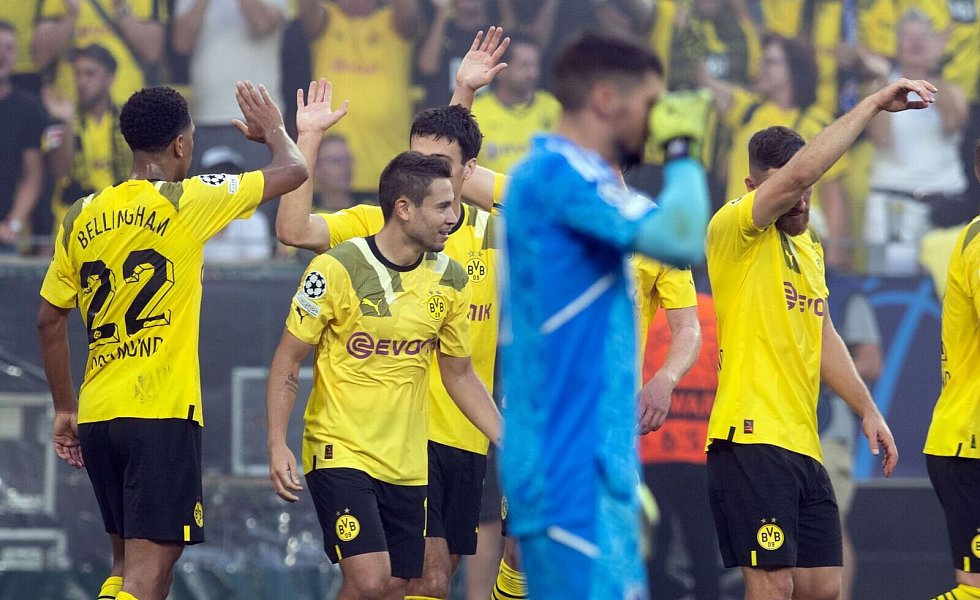 Dass der BVB nicht schon wieder in der Gruppenphase der Königsklasse ausscheiden will, zeigte er tatsächlich. Brenzlig wurde es nur zweimal: In der 1. Minute streifte ein Schuss der Gäste den Außenpfosten, kurz nach der Halbzeitpause wehrte dann Torhüter Meyer in höchster Not gegen Lukas Lerager ab. Wenn sich die Dortmunder etwas vorwerfen konnten, dann nur die erneut schlechte Chancenverwertung.