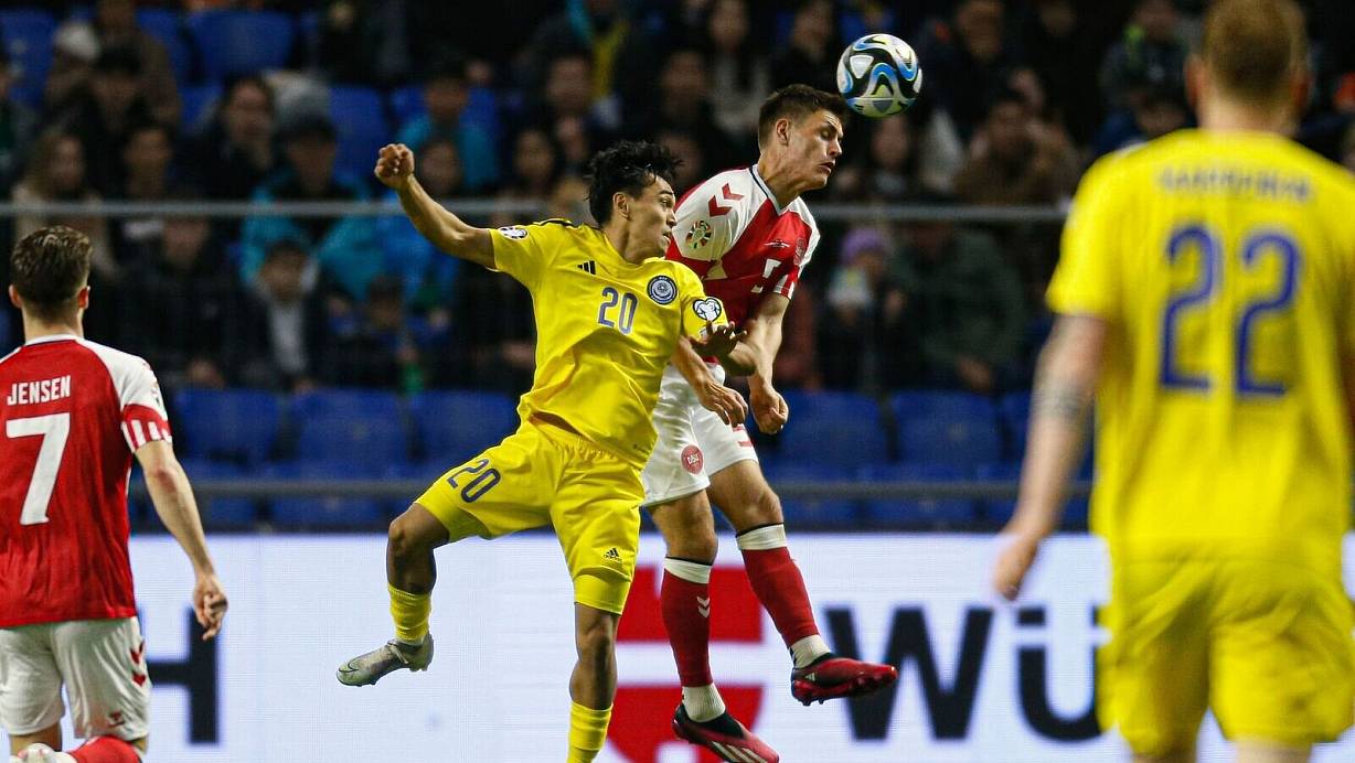 Rasmus Höjlund (21. und 36. Minute) vom italienischen Erstligisten Atalanta Bergamo hatte den Favoriten mit einem Doppelpack in Führung gebracht. Bachtijar Sajnutdinow (73.) per Foulelfmeter, Aschat Taguibergen (86.) und Abat Aimbetow (89.) drehten in einer turbulenten Schlussphase die Partie noch zugunsten der Gastgeber, bei denen der Siegtorschütze in der Nachspielzeit noch mit Gelb-Rot vom Platz musste. Die mit 60 Prozent Ballbesitz überlegenen Dänen belegen nach dem 3:1-Auftaktsieg gegen Finnland und der Niederlage in Kasachstan nur Platz vier in der Gruppe H.