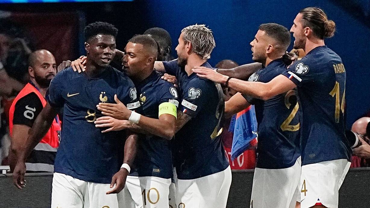 Frankreich hat sein Ticket schon so gut wie gelöst. Im Prinzenpark in Paris trat die Mannschaft von Trainer Didier Deschamps überlegen auf und spielte sich früh Chancen heraus. Auf Vorarbeit von Kapitän Kylian Mbappé nutzte Aurélien Tchouaméni (19. Minute) eine der ersten mit einem herrlichen Schlenzer zur Führung. Der eingewechselte Marcus Thuram (48.) legte kurz nach der Pause nach. Am kommenden Dienstag treffen die Franzosen in einem Testspiel in Dortmund auf Deutschland.