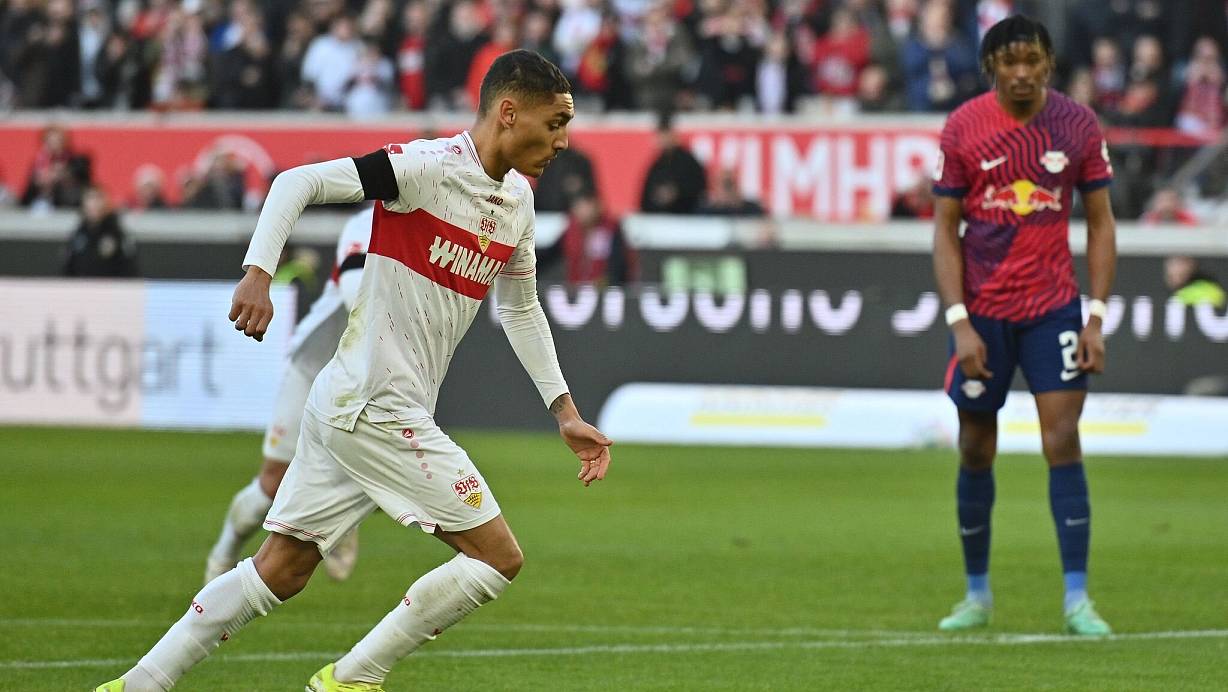 Die Gastgeber feierten nach dem befreienden ersten Erfolg in diesem Jahr in der Kabine aber laut Hoeneß auch Sturmkollege Jamie Leweling, der sein erstes Bundesliga-Tor für den VfB erzielte (48.). Das Torfestival hatte Enzo Millot mit einem souverän verwandelten Handelfmeter eingeleitet (25.). Schiedsrichter Sven Jablonski hatte die Videobilder gesichtet und dann auf Strafstoß entschieden, nachdem RB-Verteidiger Mohamed Simakan der Ball an die Hand geflogen war. Für die Gäste waren die Tore von Benjamin Sesko (32.) und Lois Openda (55.) deutlich zu wenig. RB enttäuschte auch im Angriff.