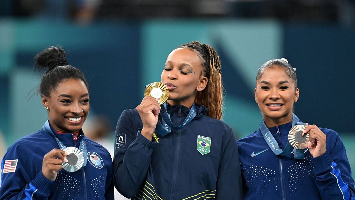 Den Boden-Wettbewerb hatte die Brasilianerin Rebeca Andrade mit 14,166 Punkten vor US-Superstar Simone Biles (14,133) gewonnen.