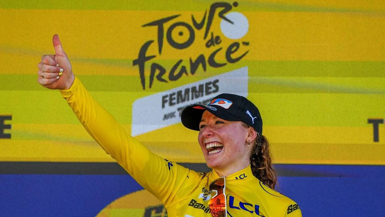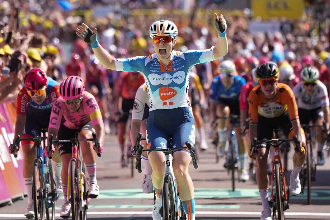Die Niederländerin Charlotte Kool hat die erste Etappe der Tour de France Femmes gewonnen und das Gelbe Trikot der Gesamtführenden übernommen. Die 25-Jährige setzte sich bei ihrem Heimerfolg auf der Etappe von Rotterdam nach Den Haag nach 123 Kilometern im Sprint vor Anniina Ahtosalo aus Finnland und der Italienerin Elisa Balsamo durch.