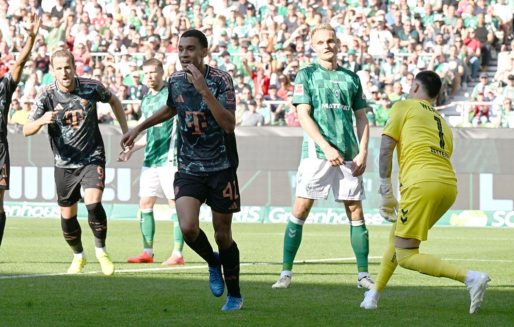 Vor 42.100 Zuschauern im ausverkauften Weserstadion erzielten der starke Michael Olise (23. Minute, 60.), Nationalspieler Jamal Musiala (32.), Harry Kane (57.) und Serge Gnabry (65.) die Treffer für die in allen Belangen überlegenen Münchner.
