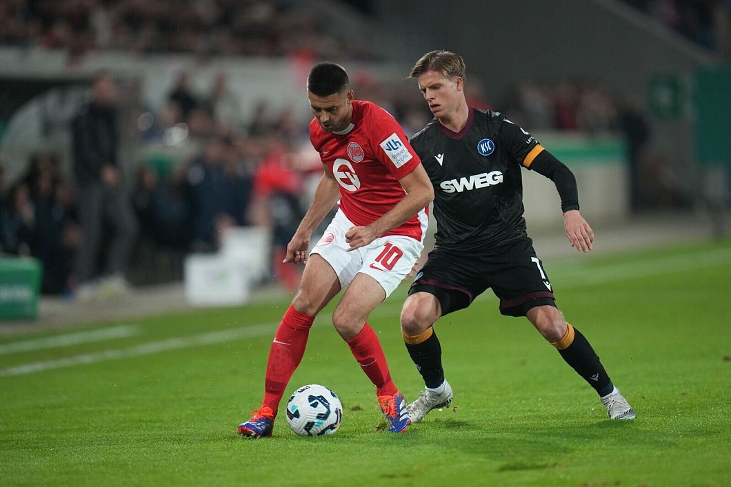 Offenbachs Dimitrij Nazarov vergab die erste gute Chance der zweiten Hälfte. Seine Direktabnahme rauschte über das Tor (53.). Auf der Gegenseite nutzte Siwsiwadse eine der wenigen KSC-Möglichkeiten zur Führung. Anschließend sorgte Beifus nach einer Ecke für die Entscheidung.