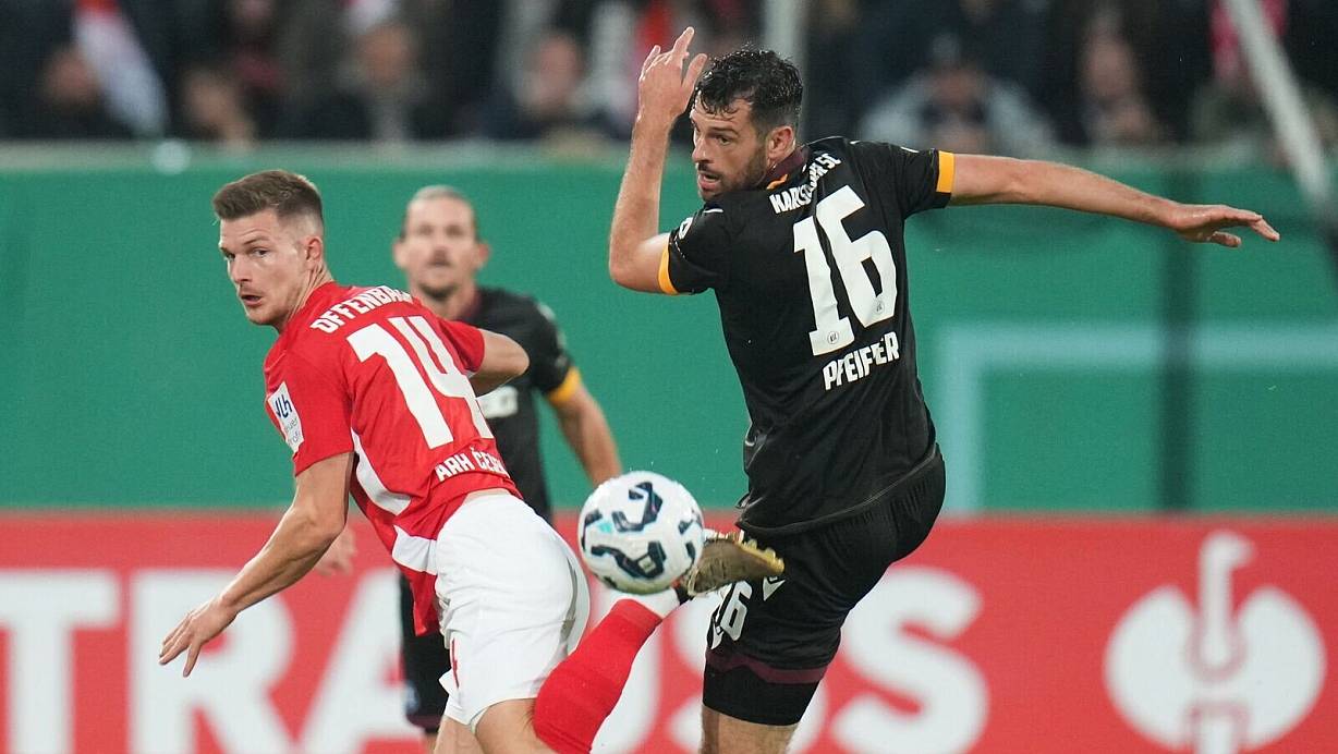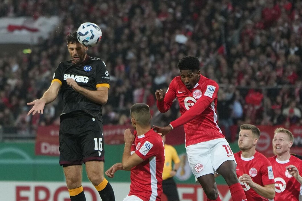 Im Vergleich zum 5:0 gegen die Sportfreunde Lotte in der ersten Runde hatte der KSC dieses Mal aber deutlich mehr Mühe. Von einem Zwei-Klassen-Unterschied war in einer ereignisarmen ersten Hälfte nichts zu sehen.