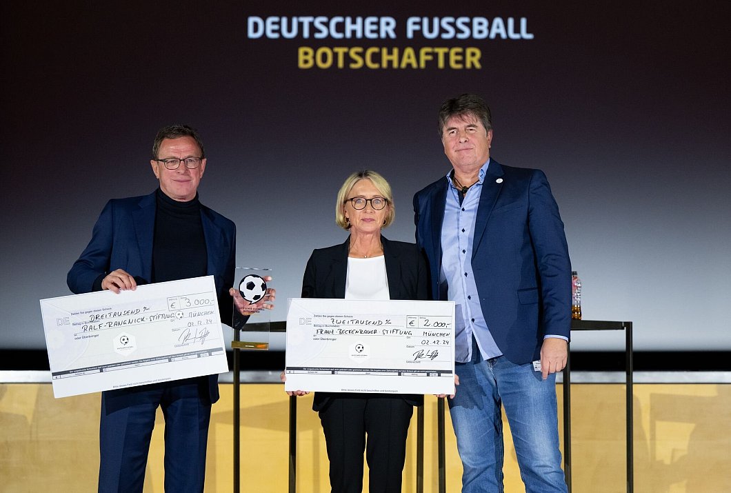 Bereits im Juli hatten Lothar Matthäus und posthum auch der verstorbene Andreas Brehme den Ehrenpreis des 2012 gegründeten Vereins «Deutsche Fußball Botschafter» erhalten. Das Preisgeld dafür wurde an die Stiftung von Franz Beckenbauer gespendet. Dessen Witwe Heidi Beckenbauer nahm es am Montagabend auf derselben Bühne wie Rangnick in Empfang.