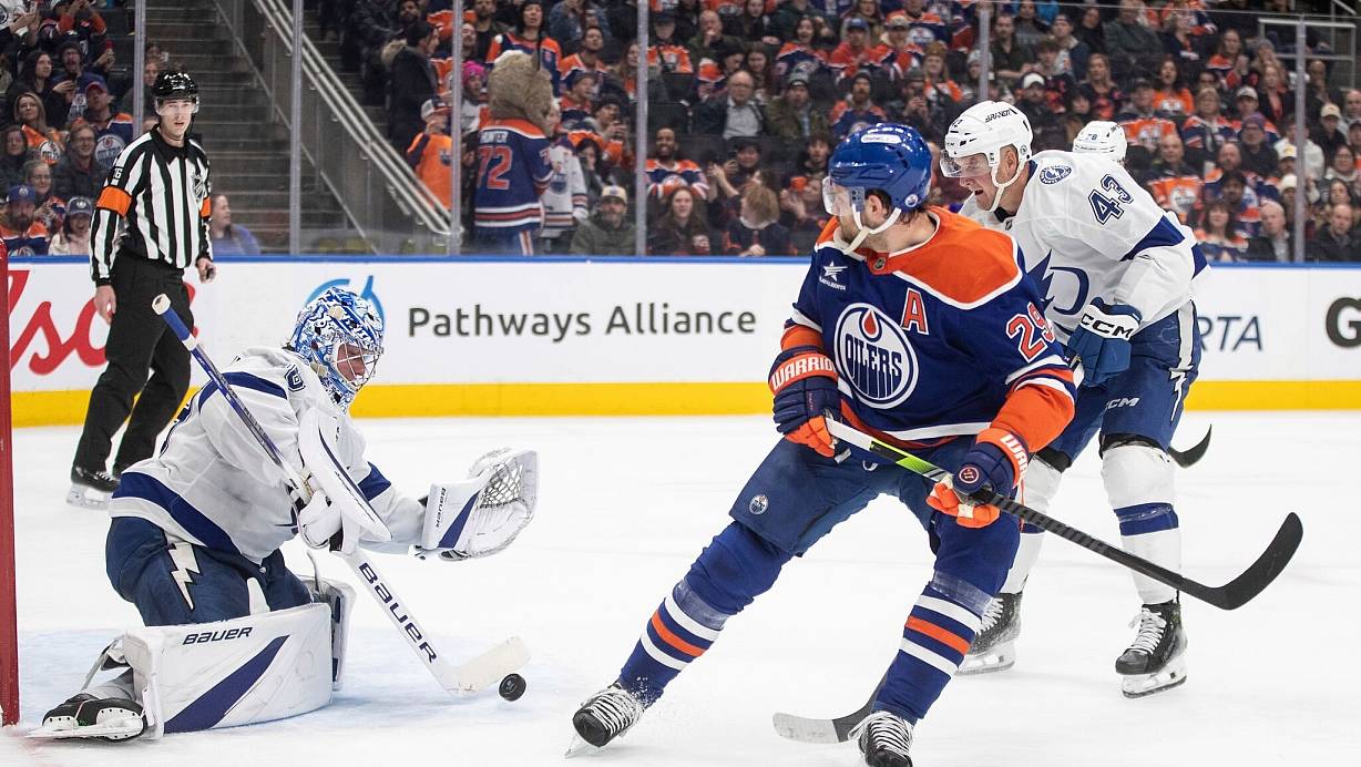 Leon Draisaitl hat die Edmonton Oilers mit einem erzwungenen Eigentor zum dritten NHL-Sieg in Serie geführt. Nach der Vorlage zum Führungstor von Connor McDavid tauchte der deutsche Eishockey-Star beim 2:1 gegen die Tampa Bay Lightning frei vor dem gegnerischen Tor auf, vom Schlittschuh eines Verteidigers ging der Puck schließlich über die Linie. Der Treffer wurde Draisaitl statistisch angerechnet, er kommt damit auf 20 Saisontore und führt die NHL-Torjägerliste an. Dazu kommen 18 Vorlagen.