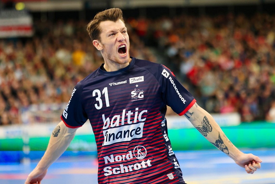 Flensburg kam wieder heran, ließ aber klare Gelegenheiten aus. Allein Linksaußen Emil Jakobsen scheiterte mit zwei Siebenmetern am Berliner Torhüter Dejan Milosavljev. Besser machte es der Däne in der zweiten Hälfte. In der 47. Minute traf er zum 31:29 für die SG. Nationalmannschaftskapitän Johannes Golla erhöhte auf 35:31 (52.).