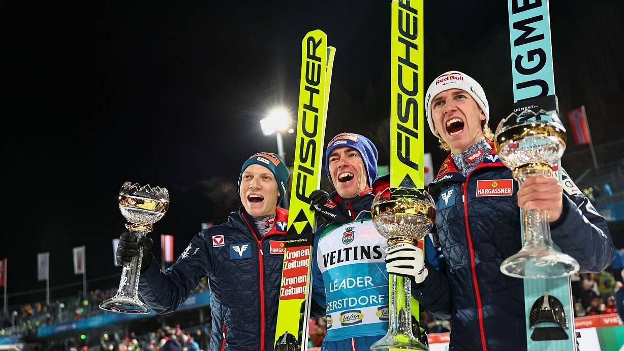 «Die Ergebnisliste lügt nicht. Wir sind mit Abstand die beste Nation derzeit», sagte der ehemalige Tournee-Sieger Gregor Schlierenzauer im ORF mit Blick auf die bisherige Tournee. Kraft und Daniel Tschofenig räumten alle drei Siege ab. Jan Hörl wurde zweimal Zweiter und belegt diesen Rang auch im Gesamtklassement. Das Trio wird nur von 1,3 Punkten getrennt - das sind umgerechnet etwas mehr als 70 Zentimeter.