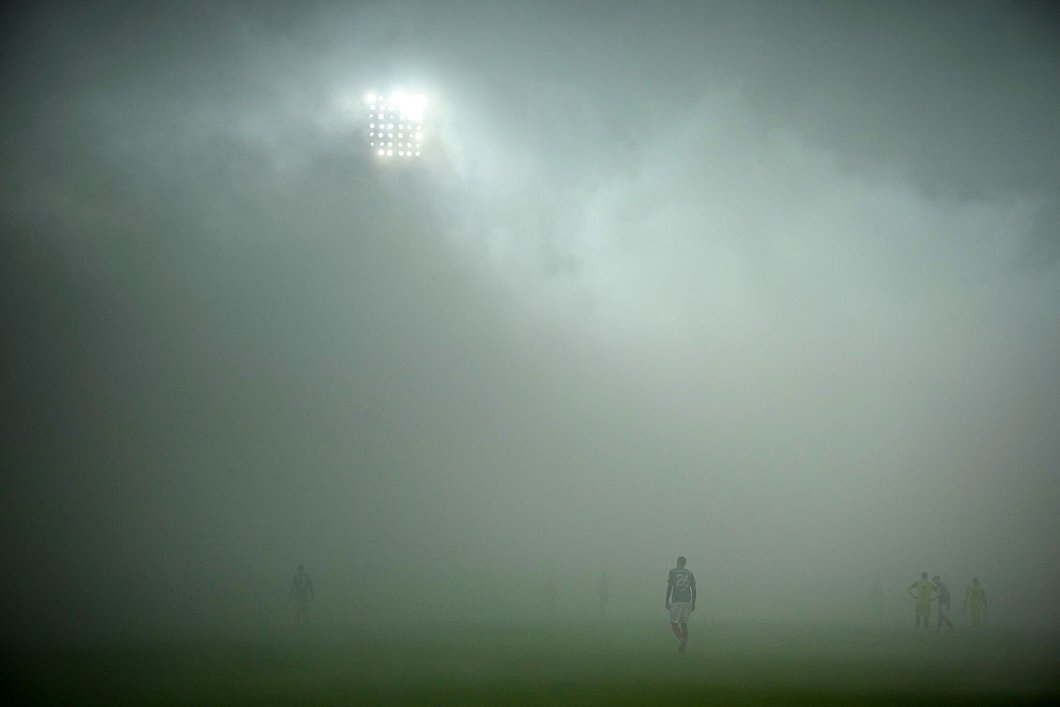 Weil die euphorisierten Kieler Fans in der ersten und zu Beginn der zweiten Halbzeit das Spielfeld mittels Pyrotechnik stark vernebelten, war das Spiel gleich zweimal kurzzeitig unterbrochen.
