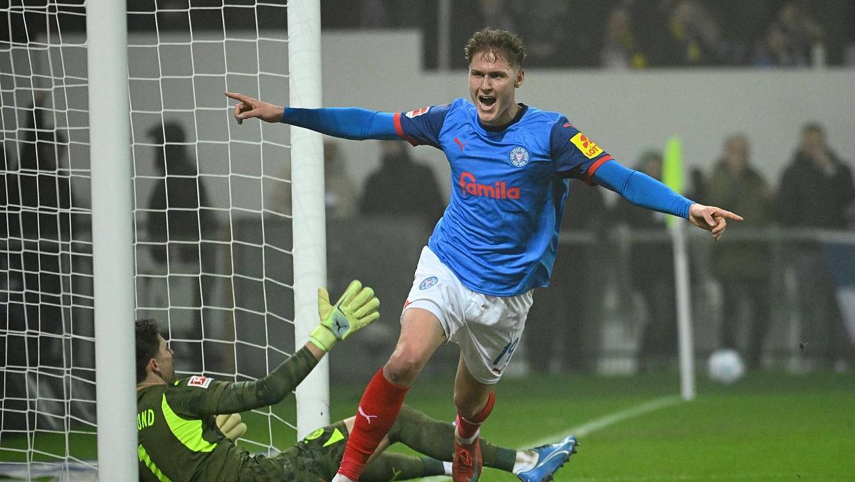 Und tatsächlich fand der keineswegs glanzvoll aufspielende BVB noch mal ins Spiel. Reyna und Gittens verkürzten binnen sechs Minuten fast aus dem Nichts. Das Zittern auf Kieler Seite begann - erst recht, als Holtby für eine ebenso unnötige wie heftige Grätsche von hinten gegen Felix Nmecha vom Feld musste. Doch in der langen Nachspielzeit setzte Arp den finalen Stich, als er den Ball aus über 40 Metern ins von Torhüter Gregor Kobel verlassene BVB-Tor schob.