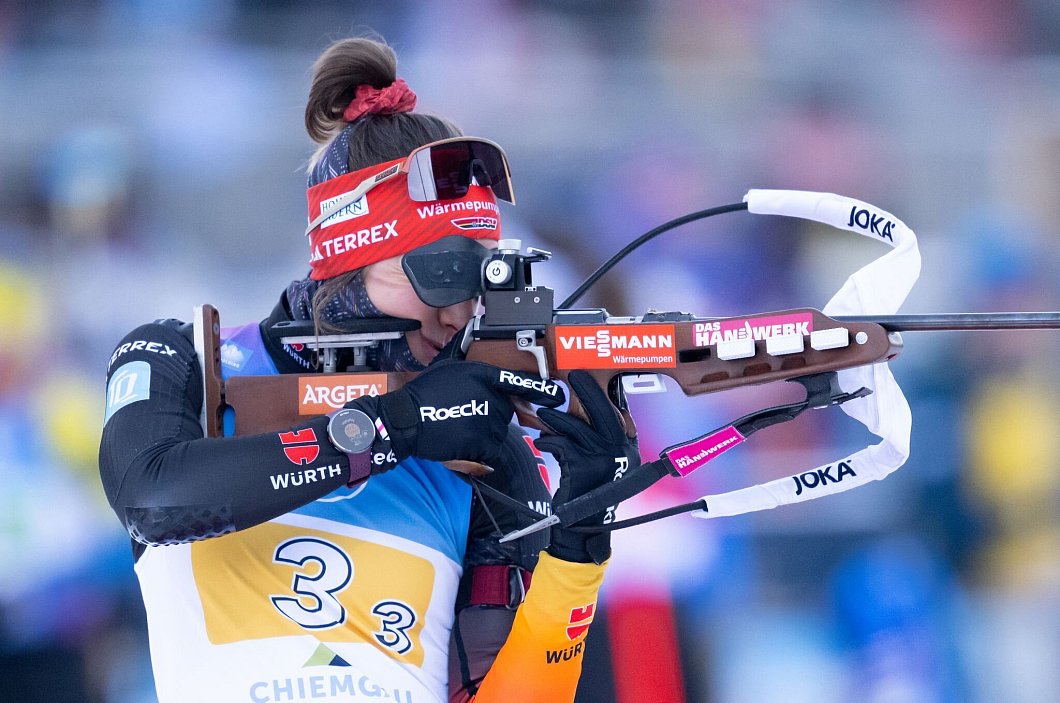 Scherer schaffte im ersten Weltcup-Staffelrennen ihrer Laufbahn einen starken Start und übergab nach nur einem Nachlader an Grotian. Vor 20.500 feiernden Zuschauern in der Chiemgau Arena brauchte auch die 20-Jährige nur eine Extrapatrone und brachte Deutschland vor Norwegen an die Spitze. Das überraschte durchaus, denn nach den krankheitsbedingten Ausfällen von Vanessa Voigt und Julia Tannheimer hatte der Deutsche Skiverband bei der Aufstellung keine Wahl. Es traten die vier Athletinnen an, die übrig waren.
