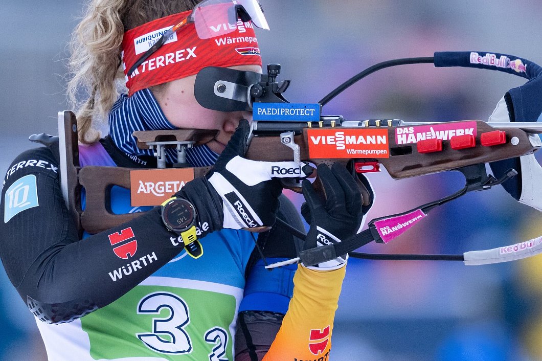 Schneider war erstmals in diesem Winter in einer Staffel dabei und reihte sich nach zwei Fehlern zunächst auf Platz drei ein, um kurz darauf wieder in Führung zu gehen. Die Gesamtweltcup-Führende Preuß machte sich gemeinsam mit Norwegen und Schweden auf den Weg zu ihrem ersten Schießen. Ohne Patzer erarbeitete sie sich einen Vorsprung, den sie dank einer zweiten Schnellfeuereinlage bis ins Ziel verteidigte.