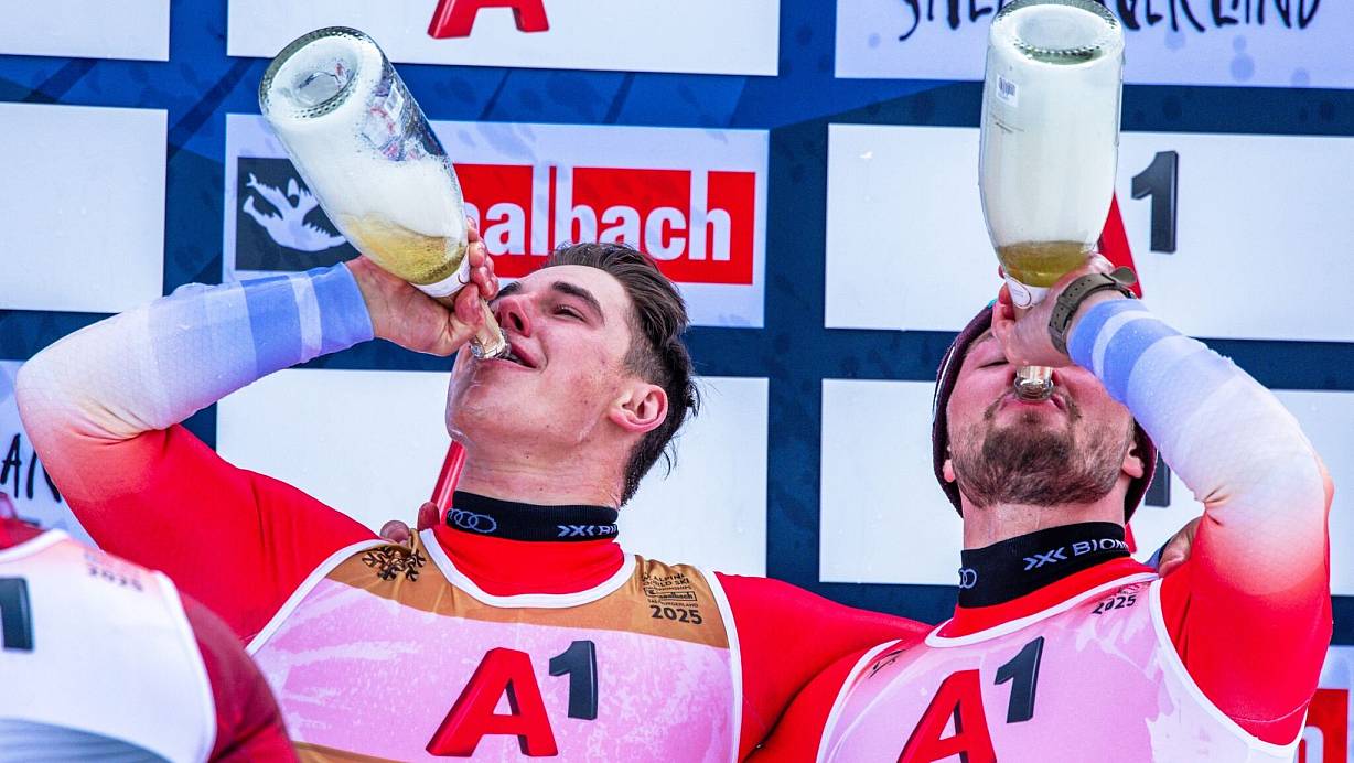 An diesen Anblick wird sich mancher erst gewöhnen müssen. Abfahrts-Weltmeister Franjo von Allmen und das Schweizer Ski-Team ließen nach ihrer sportlichen Show in Saalbach-Hinterglemm am Sonntag offenbar den Rasierer kreisen. Der 23-Jährige erschien nach seiner Gold-Fahrt nicht nur bestens gelaunt, sondern auch mit einer Halbglatze zur Medaillenvergabe. In der Mitte waren die Haare komplett abrasiert, an den Seiten noch lang - genau wie bei Landsmann Marco Odermatt.