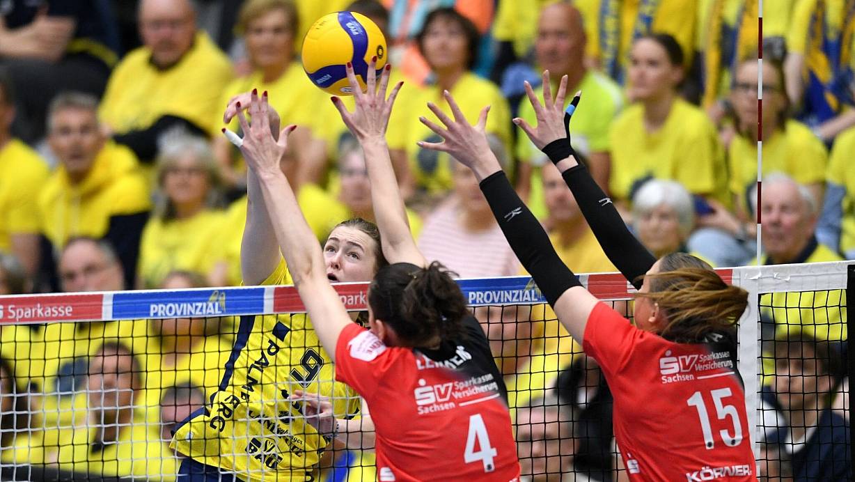 Das nächste Duell der beiden deutschen Topteams findet am Samstag (17.15 Uhr/Sport1) in der Schweriner Palmberg Arena statt. Mit dem dann dritten Sieg könnten die SSC-Volleyballerinnen zum ersten Mal nach 2018 wieder die Meisterschale in die Höhe stemmen.