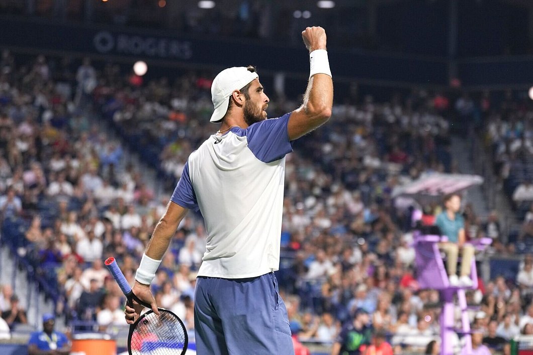Chatschanow trifft im Endspiel beim mit insgesamt rund 9,2 Millionen US-Dollar (rund 8 Millionen Euro) dotierten Hartplatz-Turnier in Kanada am Donnerstag (Ortszeit) auf den US-Amerikaner Ben Shelton, der sich 6:4, 6:3 gegen seinen Landsmann Taylor Fritz durchsetzte.