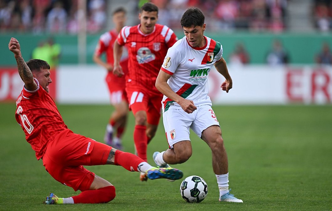 Steve Mounié (52. Minute) erlöste Augsburg mit seinem Tor vor 14 000 Zuschauern gegen den mutigen Viertliga-Club. Samuel Essende (79.) machte mit dem zweiten FCA-Tor alles klar.