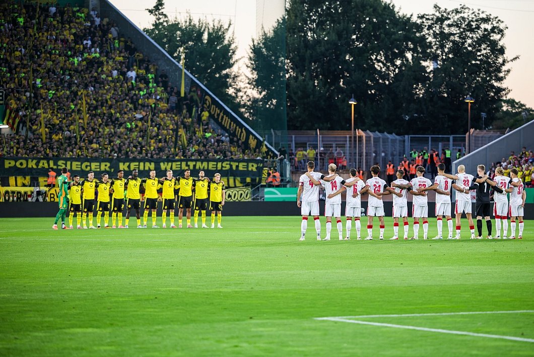 Der sommerlich-laue Fußball-Abend, an dem schon Stunden vor Anpfiff Fans in Rot und Schwarz-Gelb durch die Stadt zogen, begann im ausverkauften Stadion mit einem Moment der Stille. Die beiden Vereine erinnerten mit einer Gedenkminute an den ehemaligen Fußball-Weltmeister Frank Mill, der vor zwei Wochen im Alter von 67 Jahren gestorben war. Der Essener Mill hatte in seiner Karriere für beide Clubs gespielt.