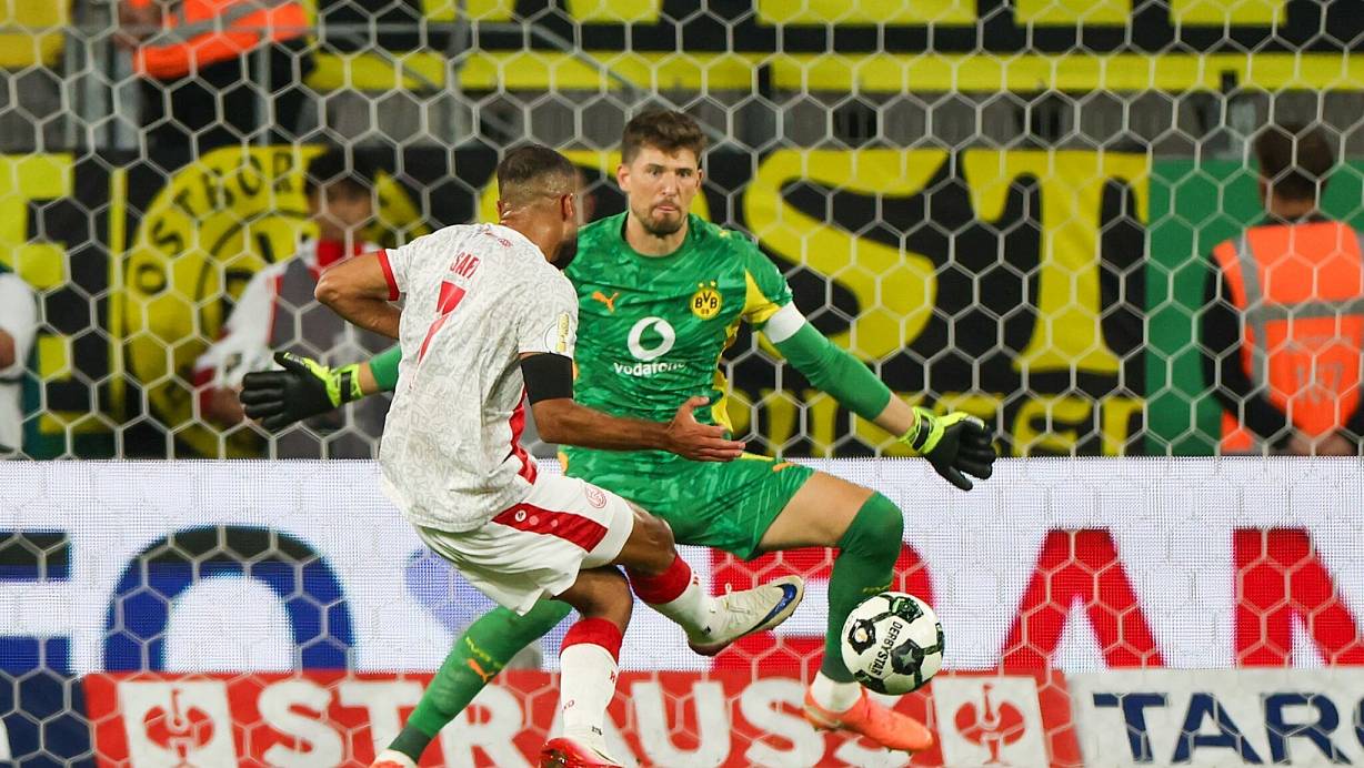 Der Torwart verhinderte nicht nur mehrere Male den Rückstand, sondern brüllte seine Vorderleute auch lautstark an. Gut sechs Wochen nach der achtbaren Leistung beim Club-WM-Aus gegen Real Madrid war der international ambitionierte BVB kaum wiederzuerkennen - es drohte eine Blamage in Runde eins, wie sie der Verein zuletzt im August 2005 bei Eintracht Braunschweig erlebt hatte.