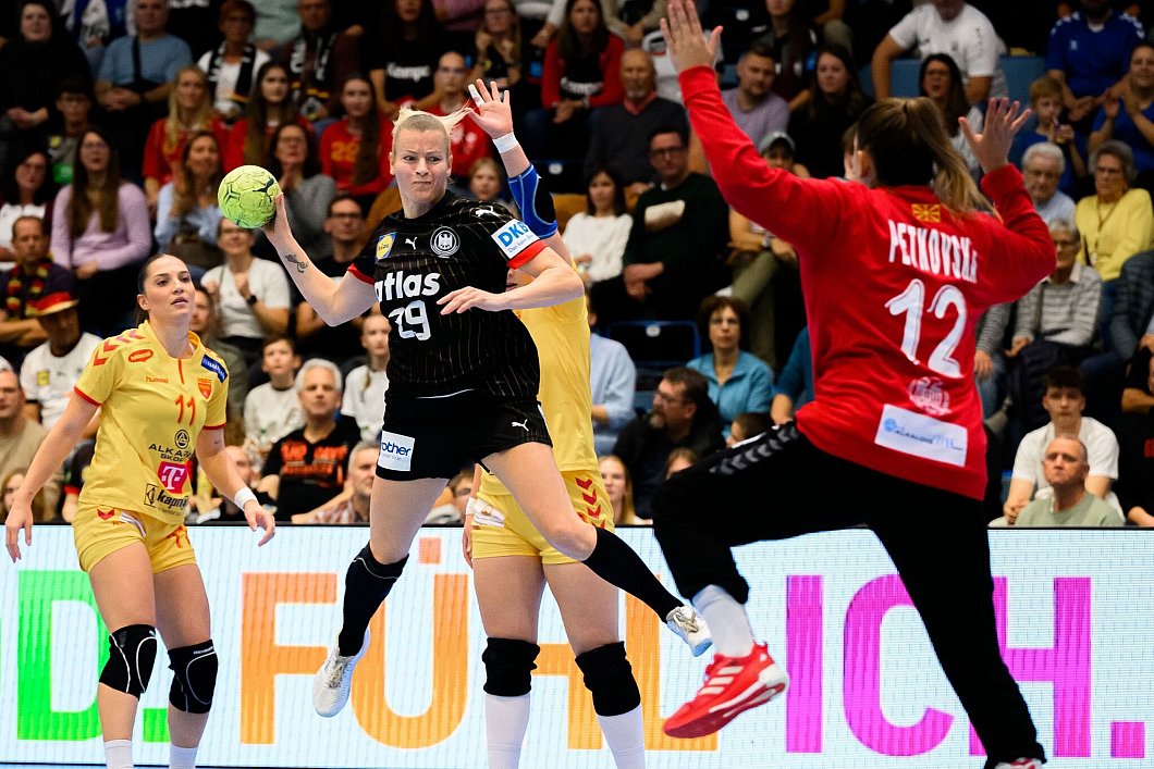 Die deutschen Handballerinnen sind ihrer klaren Favoritenrolle gerecht geworden und mit einem Pflichtsieg in die Qualifikation für die Europameisterschaft 2026 gestartet. Die Auswahl von Bundestrainer Markus Gaugisch setzte sich in Gummersbach mit 34:18 (14:8) gegen Nordmazedonien durch. Beste DHB-Werferinnen waren Viola Leuchter und Alexia Hauf mit je fünf Toren.