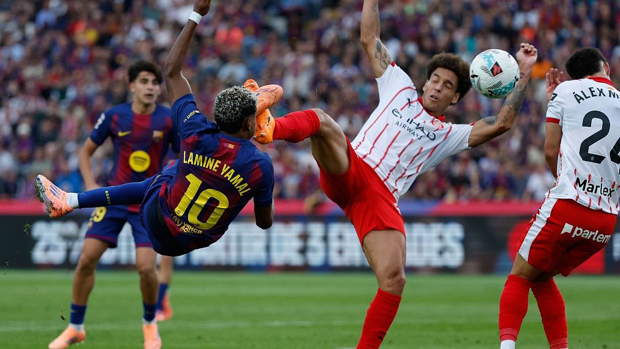 Der FC Barcelona hat den nächsten Rückschlag in der spanischen Fußball-Meisterschaft dank eines späten Treffers gerade noch vermieden. Die Mannschaft von Ex-Bundestrainer Hansi Flick gewann 2:1 (1:1) gegen den FC Girona. Matchwinner war Ronald Araujo mit seinem Siegtor in der dritten Minute der Nachspielzeit. Zuvor hatte der frühere Dortmunder Axel Witsel (20.) für Girona die Führung von Pedri (13.) ausgeglichen.