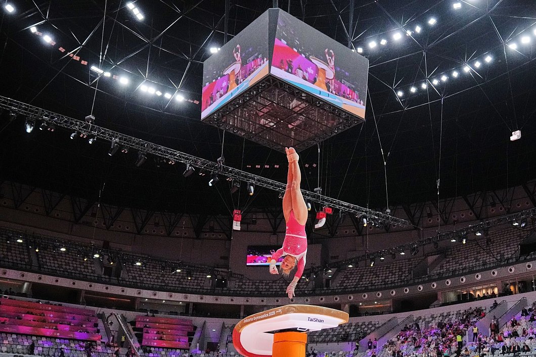 Am vorletzten Tag der Titelkämpfe in Indonesiens Hauptstadt gewann Olympiasiegerin Kaylia Neymour aus Algerien WM-Gold am Stufenbarren mit einer Übung der Extraklasse und fabelhaften 15,566 Punkten. Bei den Männern gingen die ersten Geräte-Titel an den Briten Jake Jarman am Boden, Yanming Hong aus China am Pauschenpferd und Donnell Whittenburg aus den USA an den Ringen.