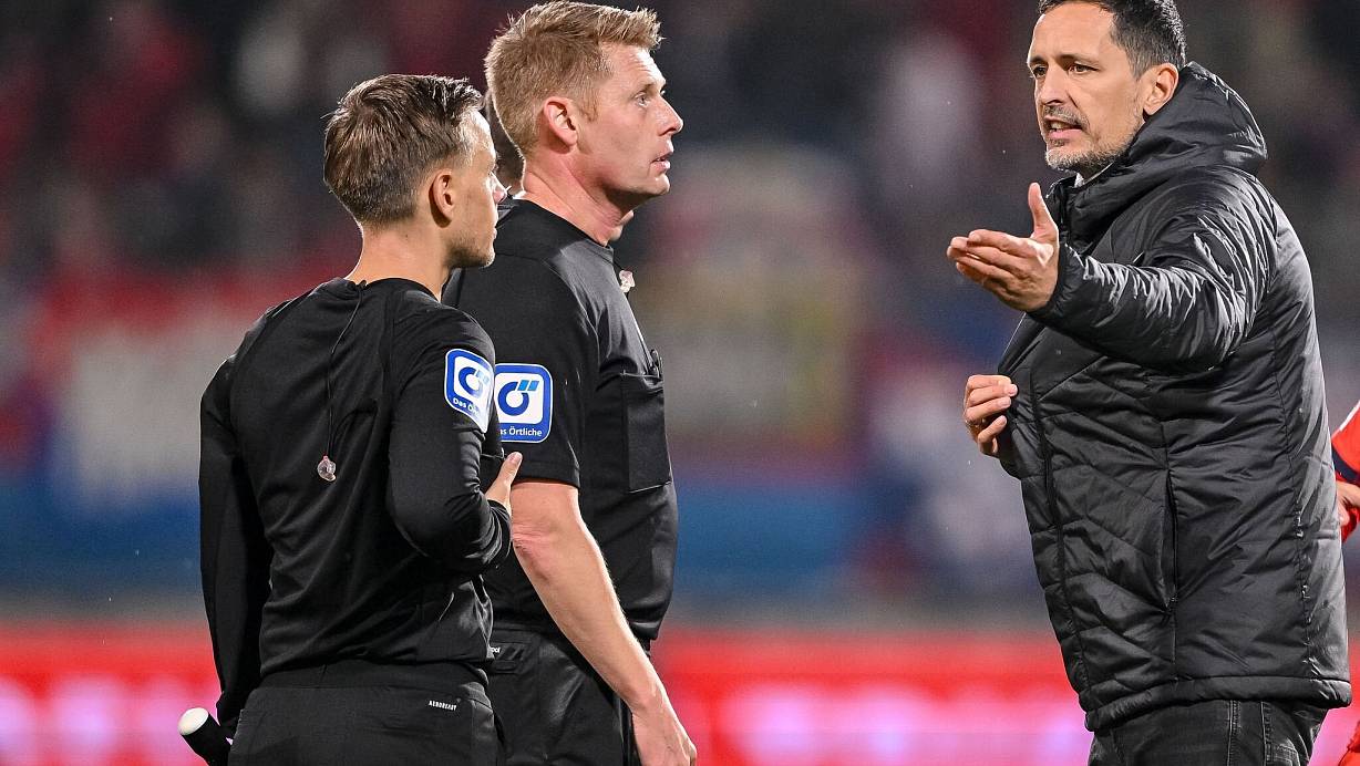 Dino Toppmöller übt nach dem Remis in Heidenheim heftige Kritik am Schiedsrichter. | © Harry Langer/dpa