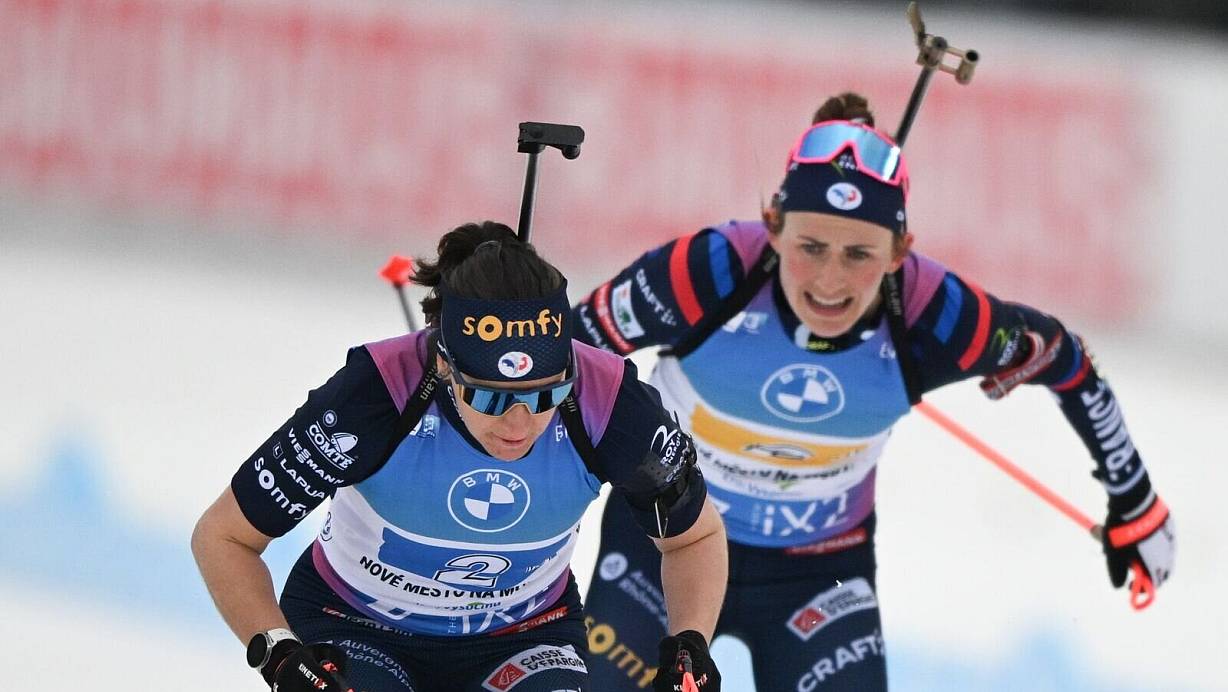 Julia Simon (l) darf nach dem Kreditkartenbetrug an ihrer Teamkollegin Justine Braisaz-Bouchet (r) bei Olympia teilnehmen. (Archivbild) | © Hendrik Schmidt/dpa