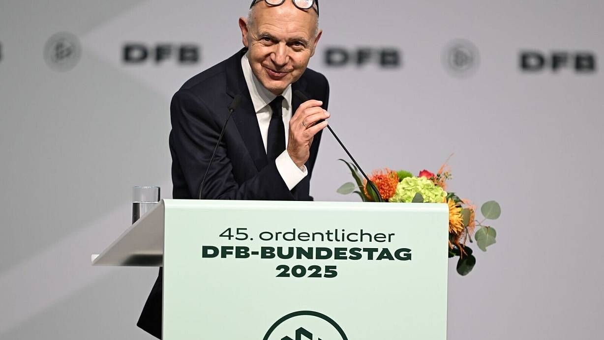 Mit einem Lächeln und wie üblich seiner Brille auf der Stirn trat Bernd Neuendorf auf die Bühne und bedankte sich für seine einstimmige Wiederwahl als Präsident des Deutschen Fußball-Bundes. Der 64-Jährige wurde auf dem 45. Ordentlichen Bundestag des weltgrößten Sportfachverbandes in Frankfurt am Main wie erwartet bis Ende 2029 im Amt bestätigt und kündigte nach turbulenten Jahren der «Konsolidierung und Transformation» an: «Die Zukunft beginnt jetzt.»