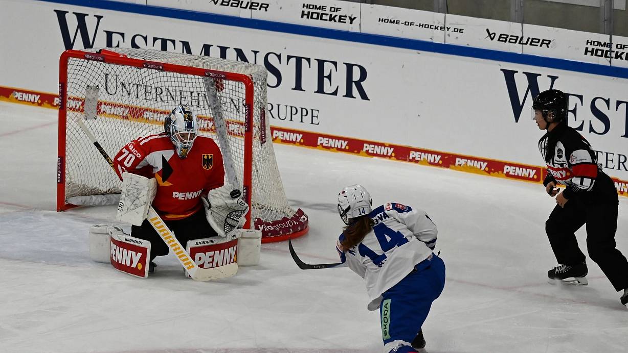 Damit spielt Deutschland am Samstag (14.45 Uhr) gegen Ungarn um den Turniersieg. Die Auswahl des Deutschen Eishockey-Bundes benötigt dafür einen Sieg nach regulärer Spielzeit. Die deutschen Frauen zeigten gegen die Slowakei eine bessere Leistung als beim 3:2 nach Penaltyschießen gegen Frankreich am Mittwoch. Aus der lange deutlichen Überlegenheit machte Deutschland indes zu wenig. «Das macht es als Trainer ziemlich stressig», sagte Bundestrainer MacLeod.